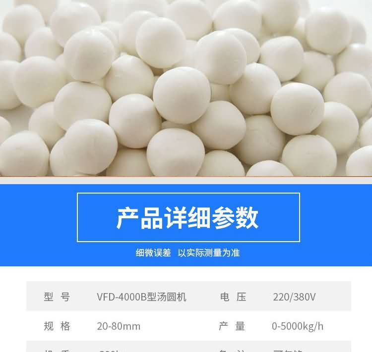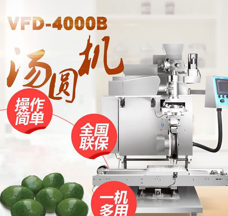 旭众牌VFD-4000B型全自动汤圆成型机是制作汤圆的理想设备,符合有关食品机械、食品卫生的规定和要求。它的形制成功,为我国人民喜欢的传统食品汤圆的机械化大批量生产提供了可靠的设备。该机用途广泛,可制作各式包馅食品,如汤圆、豆沙包、南瓜饼等,是宾馆、饭店、企业、学校、部队等公共食堂和专业理想的面食机械。