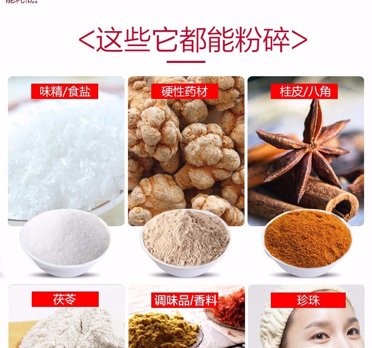 万能粉碎机适用于制药、化工、食品等行业的物料粉碎之用,禁用于粉碎易燃、易爆炸的物品。不适合粉碎含油量高(如芝麻、核桃、瓜子仁、菜籽等)、粘性的物料,因为含油量高和粘性物料很容易堵塞筛网。