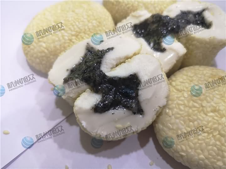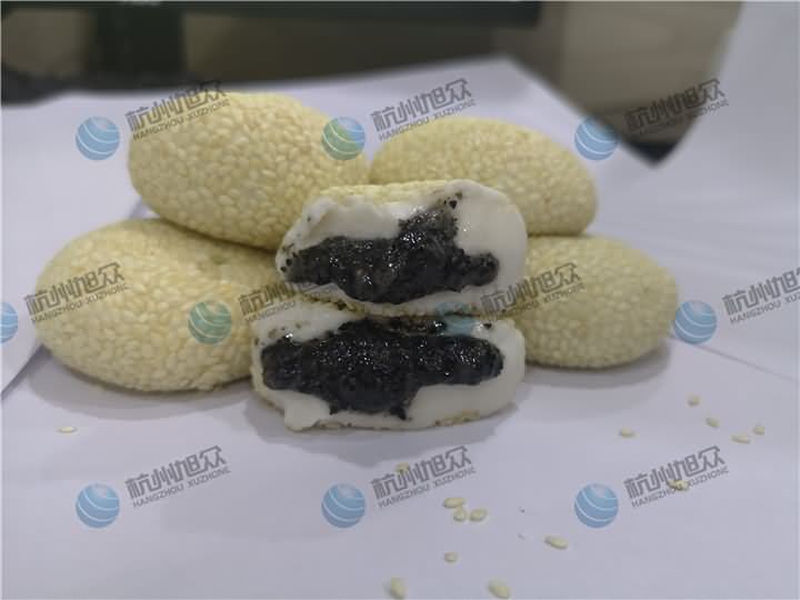 那么旭众的麻球机究竟是怎样的呢?那就是我们的多功能包馅机!昨日客户将在自己食品厂和好的面团、袋装的黑芝麻馅料及裹在外层的白芝麻带来了现场,因为他们目前还是人工包芝麻成型,在人工投入方面非常的大,但是还是缺人,可以想象他们每日的生产量是有多大,于是他们带着直接做好物料来到了现场,只要能看到包馅机做出他们想要的效果便可,那么来看看XZ-99多功能包馅机做出来的麻球是怎样的: