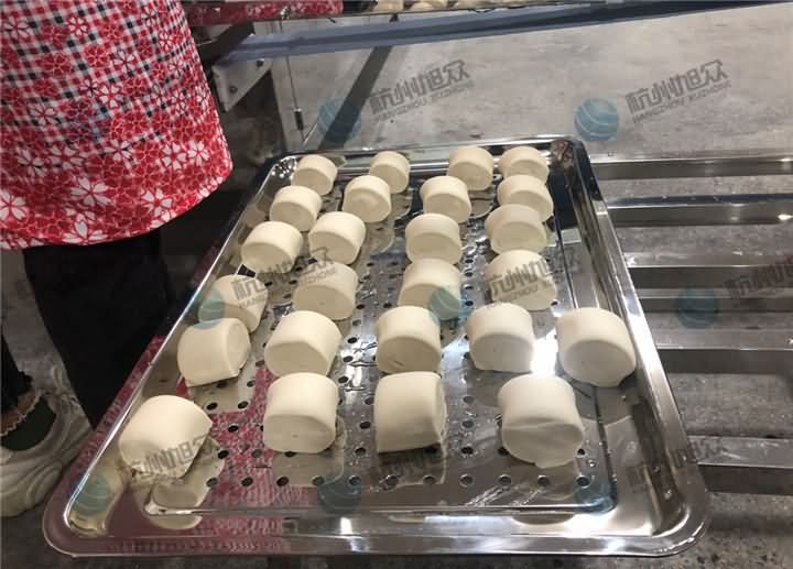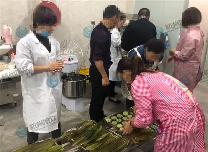 然后包馅机则就是做叶儿粑等一些特色米制品包馅美食,因为这次拍摄是在师傅上门调试,教技术培训的情况下拍摄,当天所生产的成品都是不对外销售,只是观察包子馒头机和包馅机的操作问题需要批量生产,所以不要自行在脑海中代入不好的想法哦!食品厂不像我们机械厂,对卫生要求是相当的严格,如若不是因为要调试机器估计我们师傅也进不去他们食堂内部!