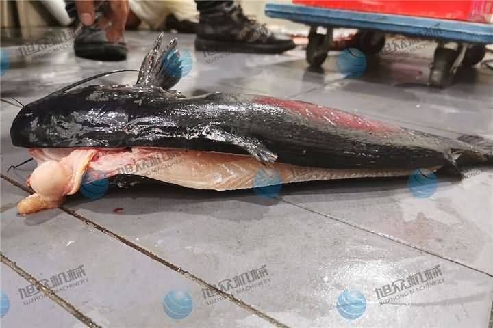 杀鱼机的效果没有比亲眼看到的更直观!我们的客户来自五湖四海皆有,有远在国外的,有近在杭州的,远距离的客户一般建议加个微信先发视频看看,如果意向非常大直接淘宝或者阿里或者直接转账定购,有意向但是还有些犹豫的客户觉得迈开自己的脚,带来自己的鱼来到现场试杀鱼机,现场直观杀鱼机的效果,而这次上门的客户是做水产业的,杀鱼的种类特别的多,除了常见到的草鱼,还带了江团来到了现场,江团没有鱼鳞所以一般不适用XZ-018开肚去鳞杀鱼机或者是XZ-017开背去鳞杀鱼机,但是他就是想要购买一台机器来完成杀鱼操作,于是现场用杀鱼机演示: