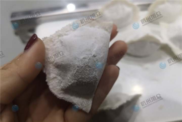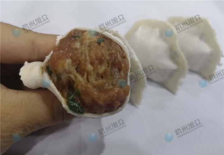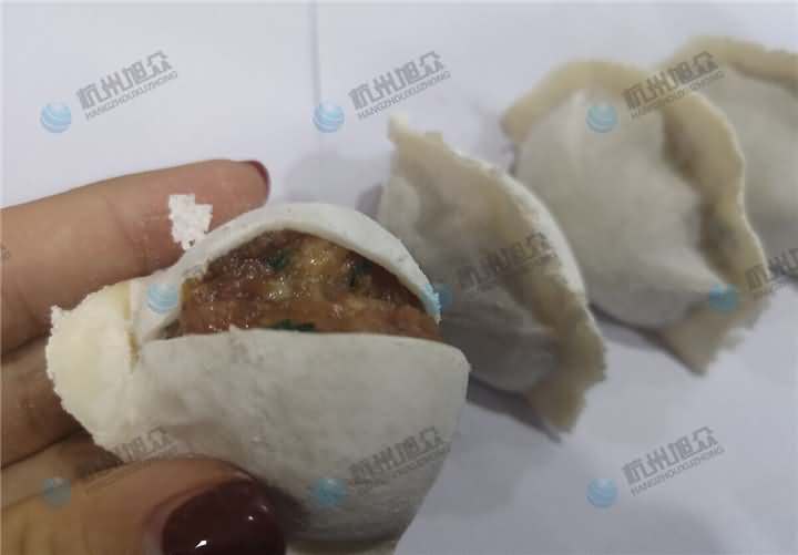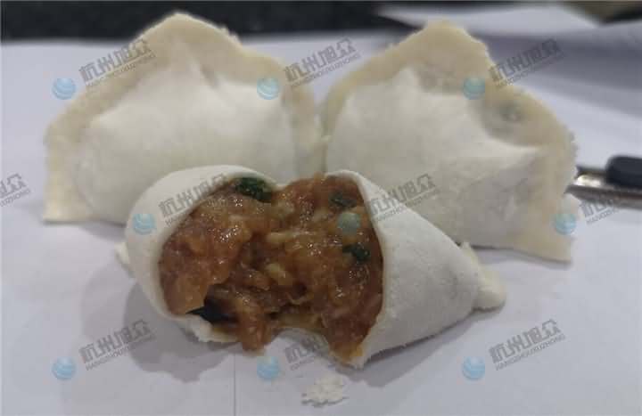 大概咨询了水饺机的价位及做的水饺大小,于是便带着馅料来到现场,直观JGB-210仿手工饺子机做水饺效果,馅料真真的饱满十足,口感的话也还可以,因为饺子机只是代替人工包水饺,口感还是要看自己的工艺,客户也看到自己想要的效果,于是便订购饺子机回家等待师傅上门调试!