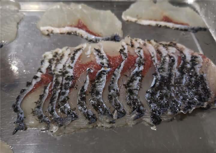 杀鱼机开肚去鳞完后的白鲢别急着带回去,看看切鱼片效果