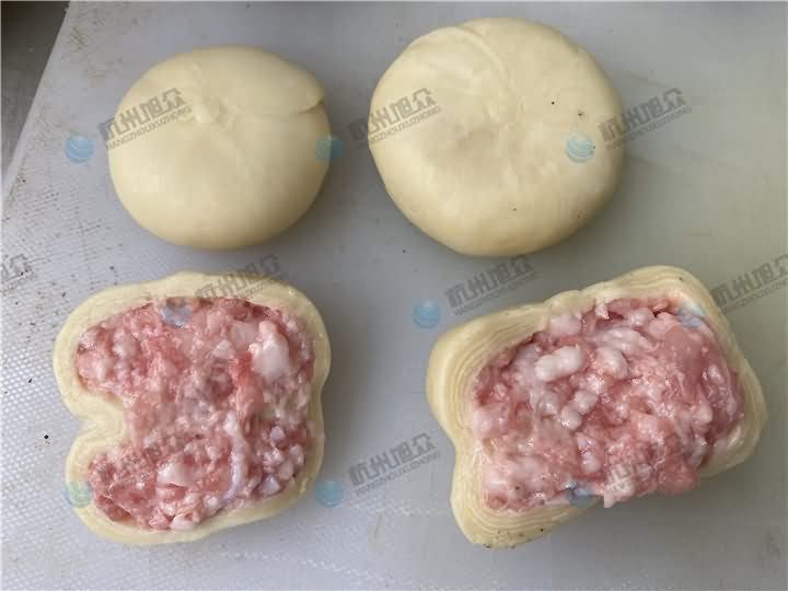 酥饼机现场演示做肉馅酥饼效果: