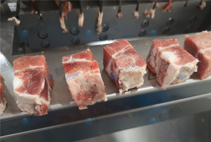 肋排剁块效果非常的好!块块分明,物料一定要微冻过的,如果用新鲜的肋排或者禽类肉类等物料,可能会造成连刀现象,具体关于更多鱼禽肉类剁块机详情拨打4008852117!