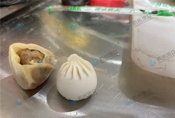 经过网友这么一提醒,还真觉得每次客户来考察包子机,都要求做这么厚的包子,难道这种规格的包子是标配的?并不是包子机只会做这种皮厚的包子,而是我们根据在场试机客户的要求来生产的。为了避免给各位网友们带来的误解,特意去做了个皮非常薄的汤包