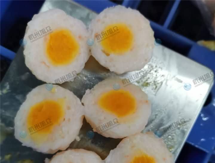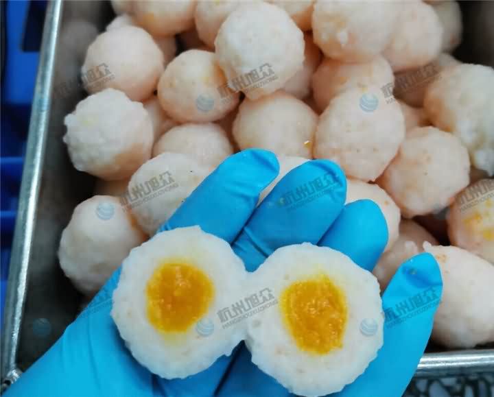 旭众XZ-609包心肉丸机制作虾滑包蛋黄效果:
