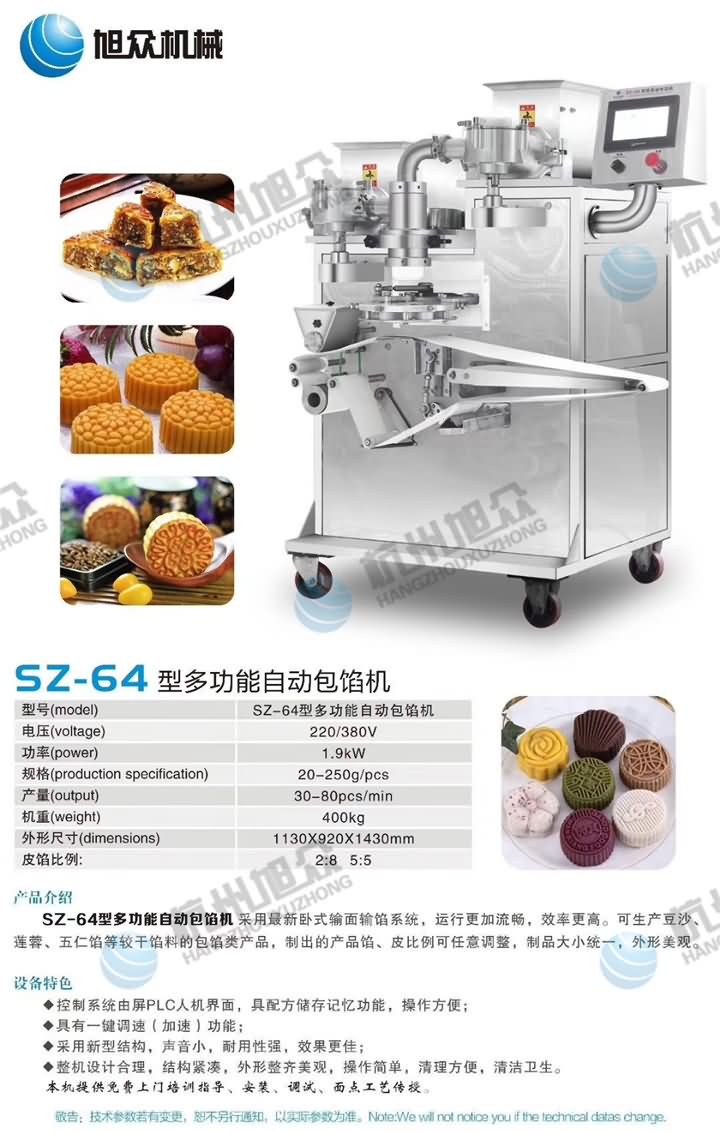 月饼工艺不同,选择的月饼机设备也不一样,旭众月饼机型号大全,想知道自己的产品适合用哪款全自动月饼机吗?欢迎拨打4008852117咨询客服预约上门考察月饼机,想要现场试机的客户需自备物料来到现场哦!
