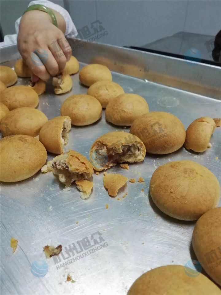 旭众SZ-64月饼包馅机做的云腿月饼 金华火腿肉丁月饼效果: