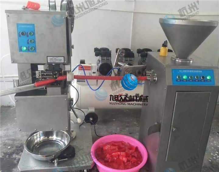 客户采购的定量灌装自动扭结机今日安装完毕!设备直接放店铺使用,放心做各种香肠、火腿肠、腊肠等灌肠食品,可以批发也可以做零售,甚至来料收取代加工费用也是可以的哦!想了解灌肠自动扭结机拨打4008852117咨询客服热线!