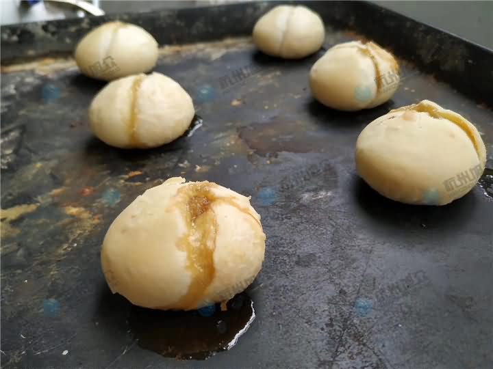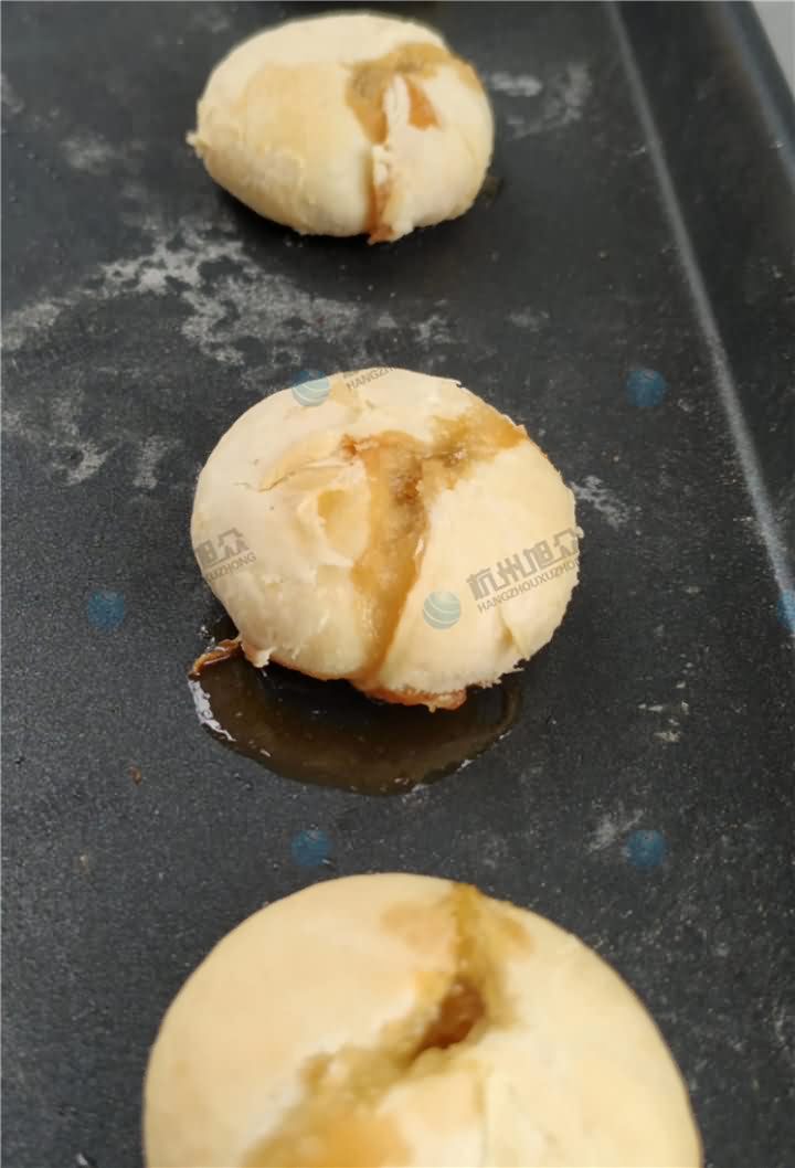 客户自备五斤左右的蒜蓉馅料,现场选择全自动酥饼机来制作蒜蓉酥饼,烘烤后的满满的蒜蓉,浓浓的香味!