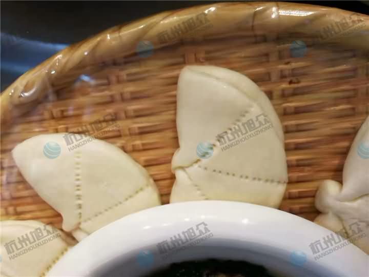 “荷叶夹”顾名思义便是其形状似荷叶,蒸制后的成品小巧可爱,摆满盘中不禁令人联想到成片荷叶随风摇摆并不时传来阵阵荷香的美景而顿生凉意,非常适合在酷暑中作为点心。荷叶夹机,是一种把拌好的面团放在机器,加工制作荷叶夹的食品机械,可生产各种荷叶夹、蝴蝶夹、肉夹馍、也可生产刀切馒头。