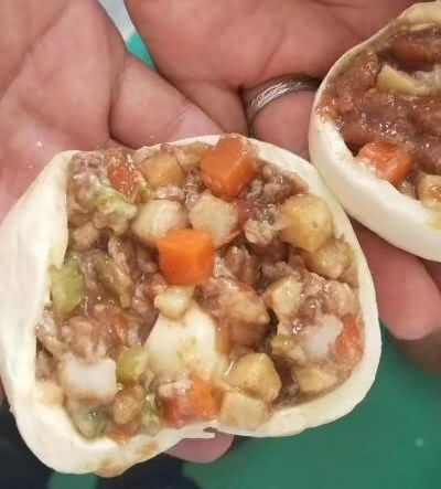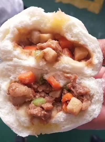 肉肉看得见,颗粒看得见,美味看得见!很多人都怕包子机做的包子肉会绞烂,但是三丁包都能做,您就不用担心了!芹菜粒,萝卜粒,猪肉粒,好好吃的包子吖!更多关于包子机做的成品拨打4008852117咨询客服。