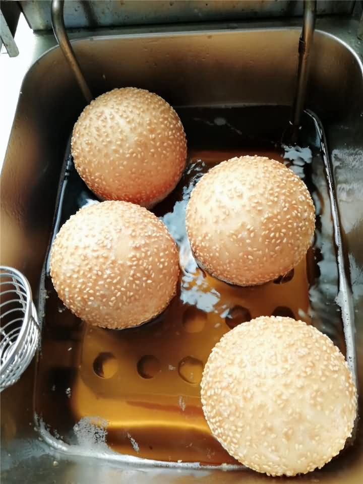 刚刚炸出来的麻圆,这成色不错吧!