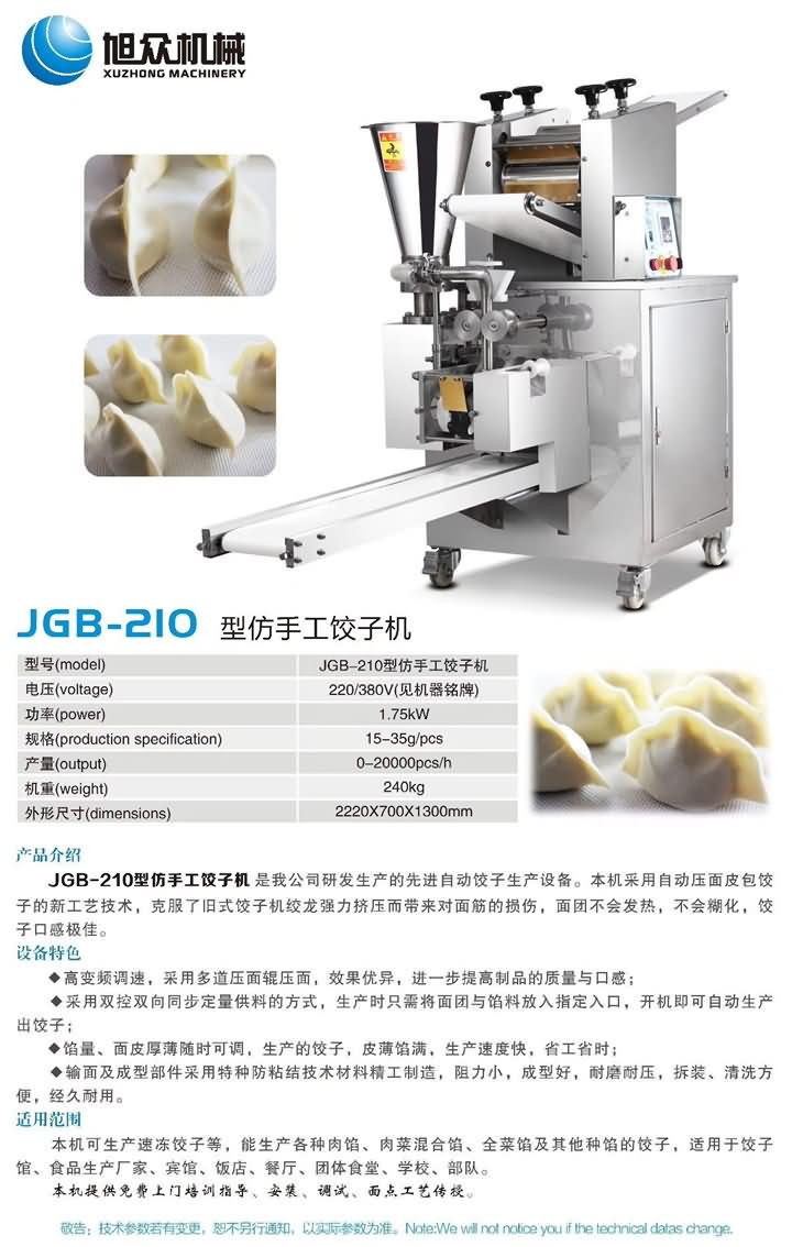 旭众JGB-210仿手工饺子机做的百财饺子,口感炒鸡好哦!欢迎来电预约上门考察饺子机器4008852117