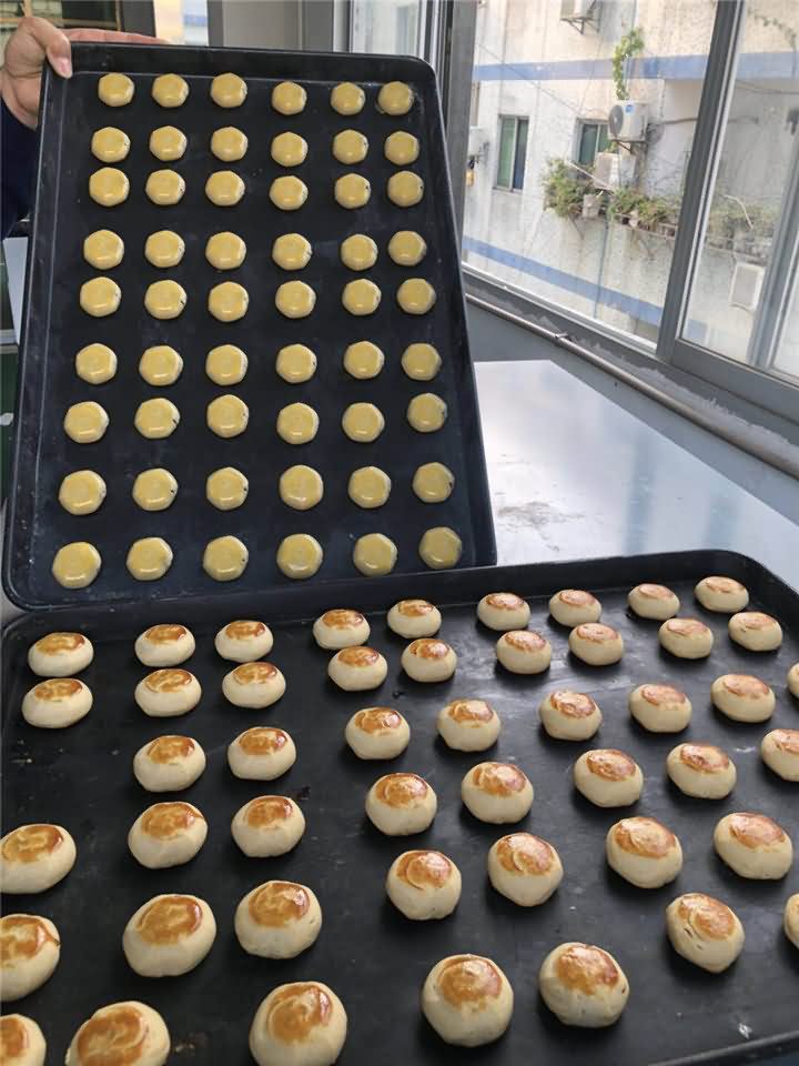 现在很多食品厂为了让月饼烘烤出来的色泽好看,一般会选择性的刷蛋黄液等其它食品,但是这样的话就得又多出一道工序,还很费时间跟人工,于是月饼机生产线根据客户刷蛋液的需求再次改装加刷蛋液装置,有需要的老板们可以选择定制款的月饼机生产线哦!