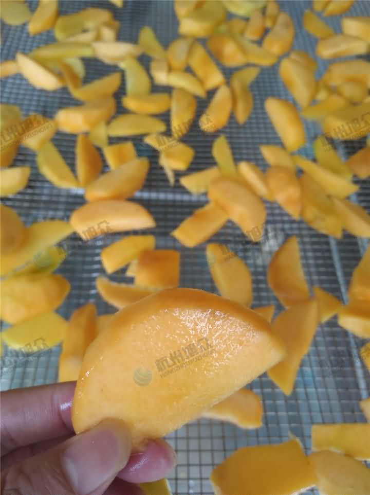 黄桃又称黄肉桃,属于蔷薇科桃属,因肉为黄色而得名。常吃可起到通便、降血糖血脂、抗自由基、祛除黑斑、延缓衰老、提高免疫力等作用,也能促进食欲,堪称保健水果、养生之桃。由于黄桃极不耐储藏,除加工成罐头外,还能用空气能烘干机将黄桃烘干,那么烘干机烘干黄桃效果: