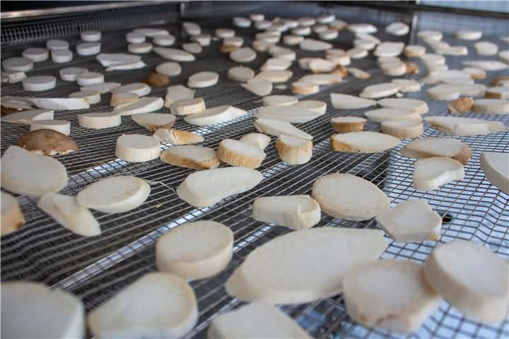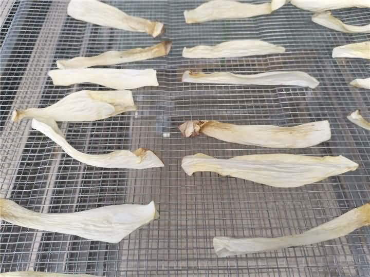 蘑菇类的一般含水量比较大,烘干过程过中要注意排湿,前期温度不能过高,否则容易烘熟,使烘出来的成品颜色变黑。但也排湿过量不然色泽偏白,失去香味,一般排湿时间不超过6小时为宜。