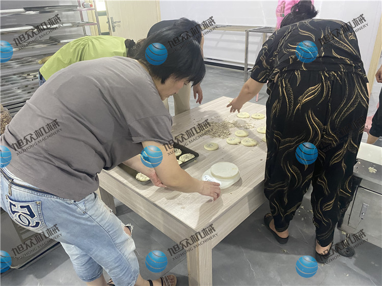 端午节已过,离中秋节还远吗?现在提前备货,到时候不慌不忙的赚钱,你看,宁波廖老板的酥饼机生产线已调试完毕,已投入生产,聪明的人早已备货。