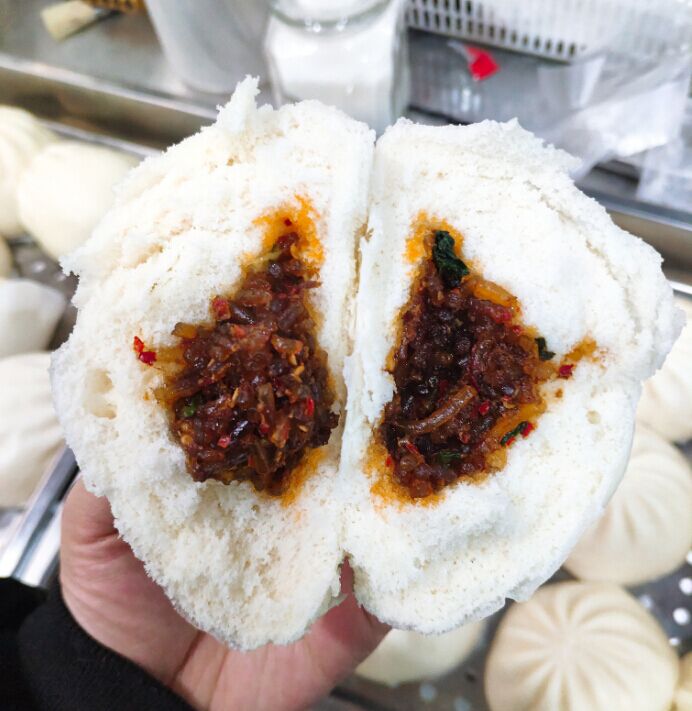 机器制作香辣粉丝包,先和好面团(可手工揉面或和面机和面),拌好馅料(手动拌馅或拌馅机拌馅),放入包子机对应的面斗和馅斗中,皮馅比例调好后开启开关制作成香辣粉丝包子,如下图: