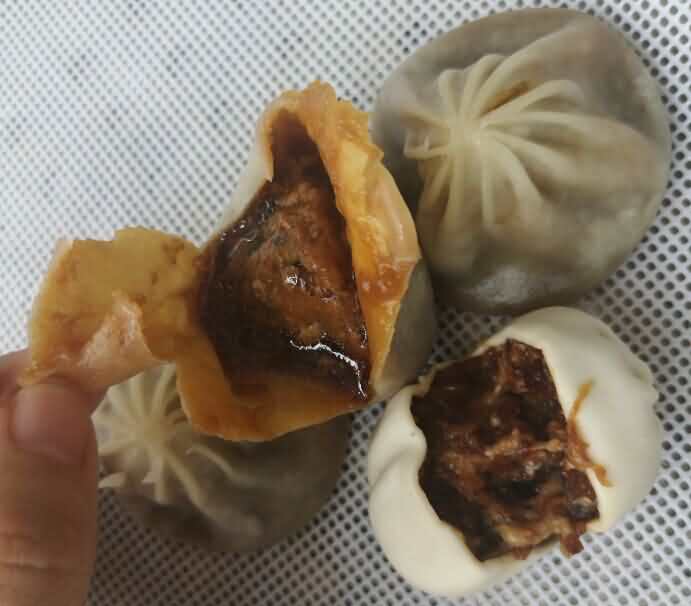 以上是由新款XZ-960包子机所生产的汤包,再对比下平常包子机所做的汤包,面皮厚薄一眼就看得出来: