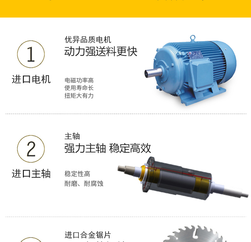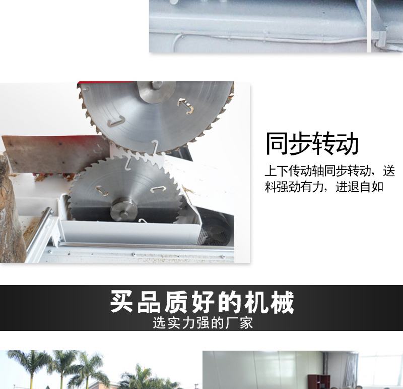 1、上下轴设计,锯路更小,锯切准确,锯销面平整光滑。设备性能稳定、安全科学、操作和维护方便,靠尺移动方便、准确。
