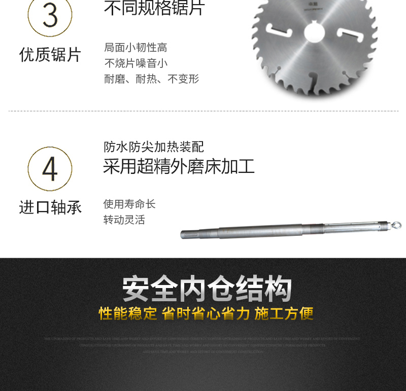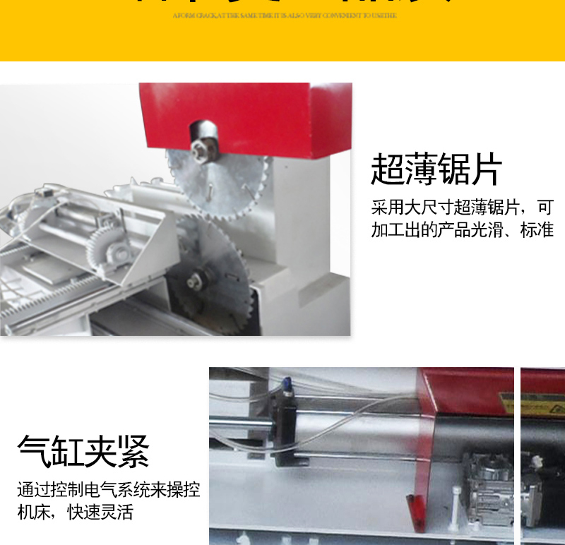 三:采用尺寸更适合的锯片,无需冷却,可加工出的产品光滑、标准、不需经过刨床等设备的两次加工,可完全代替带锯机。