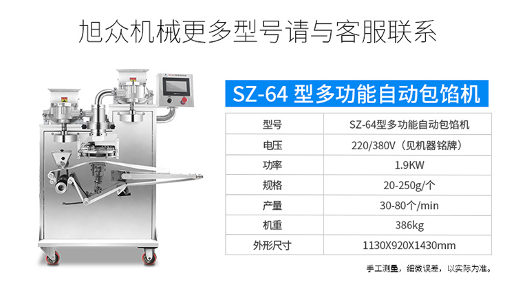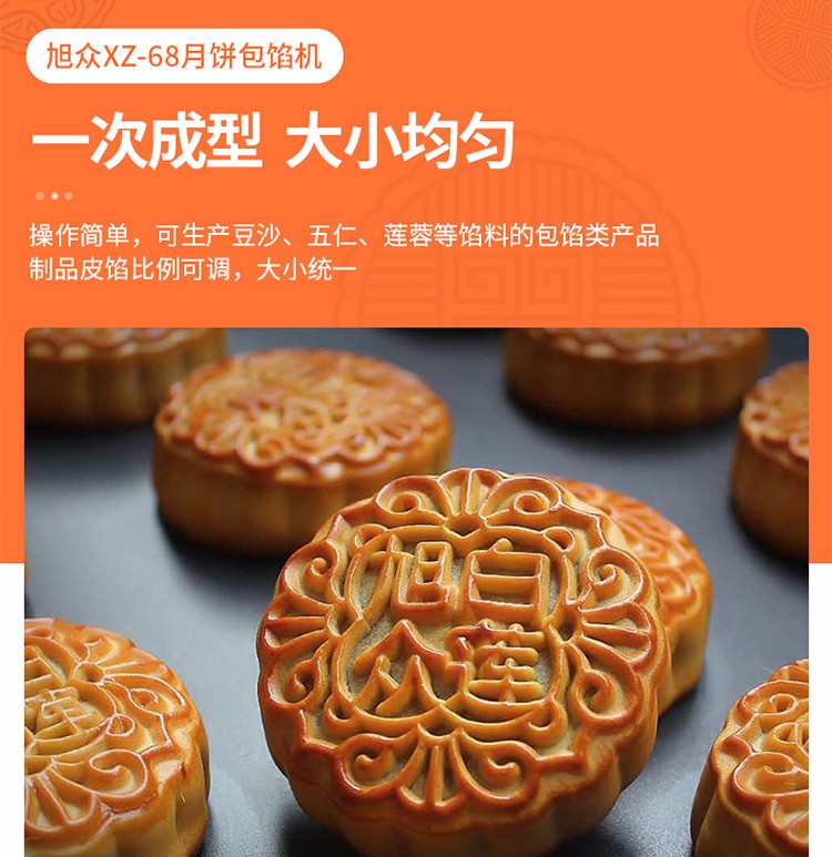 2.馅管更短,管内存料少,减小出馅压力,有效保护馅料颗粒,使馅料更松散、产品重量、皮馅比例更加稳定,适用多种馅料;