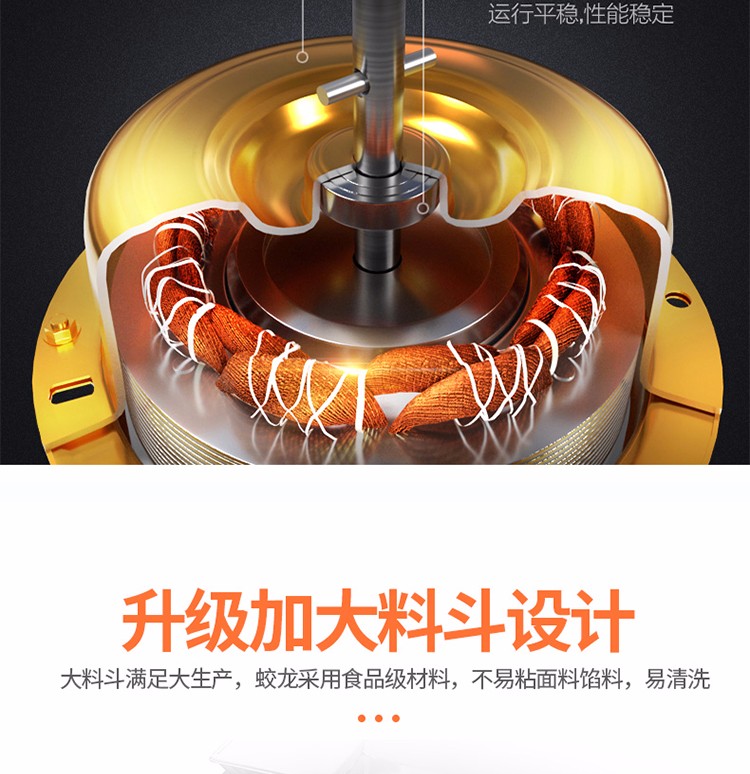 5.料斗加大,蛟龙采用高品质PP材料,不粘面料、馅料,易清洗;