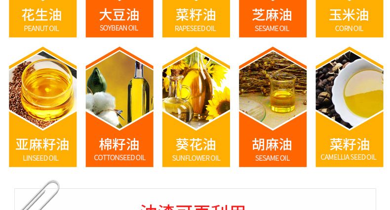 适合压榨油料 | 芝麻、菜籽、葵花籽、花生、大豆、等多种原料 |