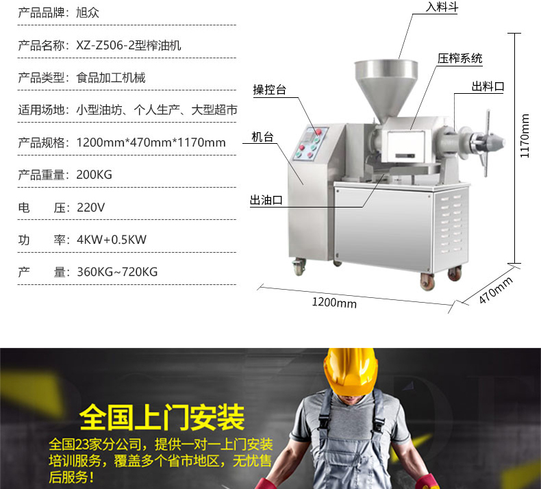 注:此机型无上门服务,如需上门选择其它榨油机,详情咨询客服