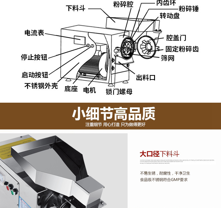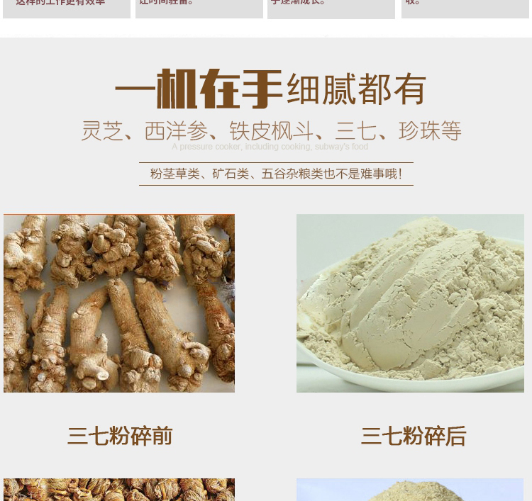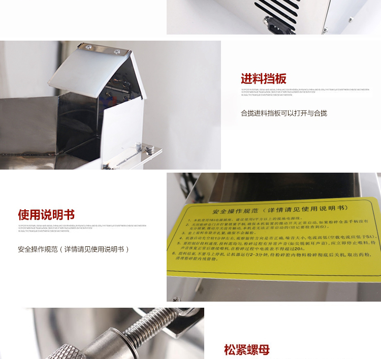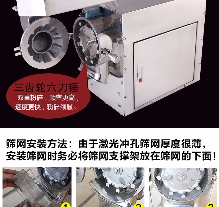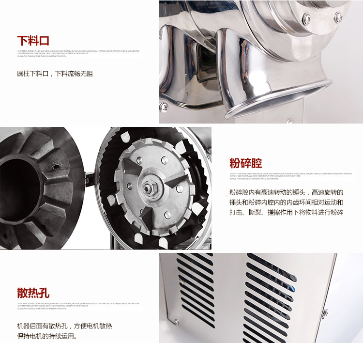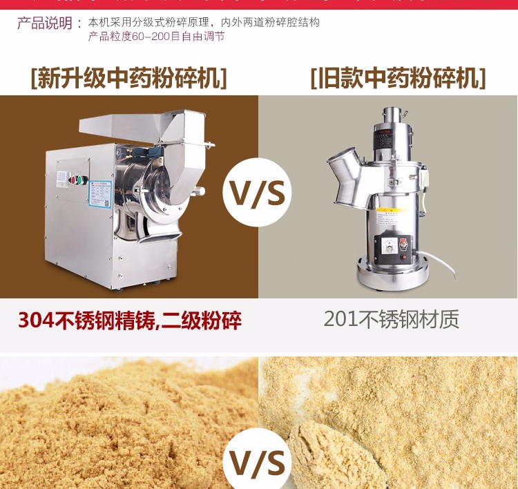 XL-60C中药粉碎机能快速粉碎各种软硬药材和其他材质的物料,主要包括灵芝、西洋参、铁皮枫斗、三七、珍珠、茎草类、矿石类、五谷杂粮、玛卡、干燥的草本植物等(油性、湿性、粘性物料除外)。注:要直接投入的块料尺寸不能大于40毫米。