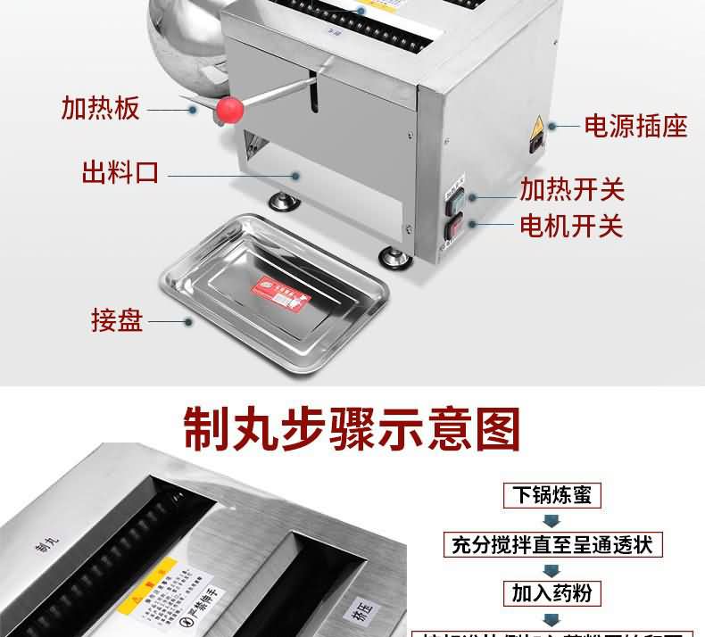3、本机适用性强。可生产各种粘度的软、硬药丸,制丸合格率高,特别适合于小型药厂试制室,中药研究所、医院、药房及保健、食品成丸生产。